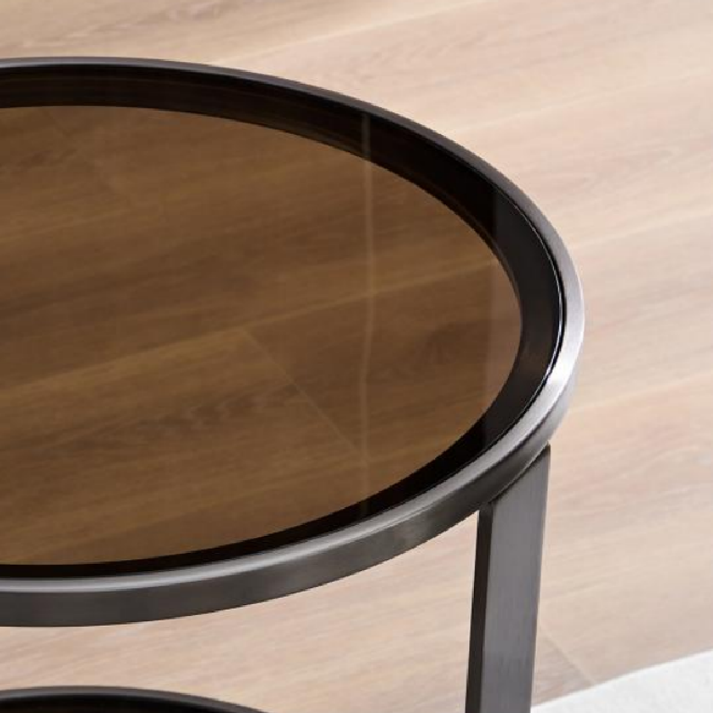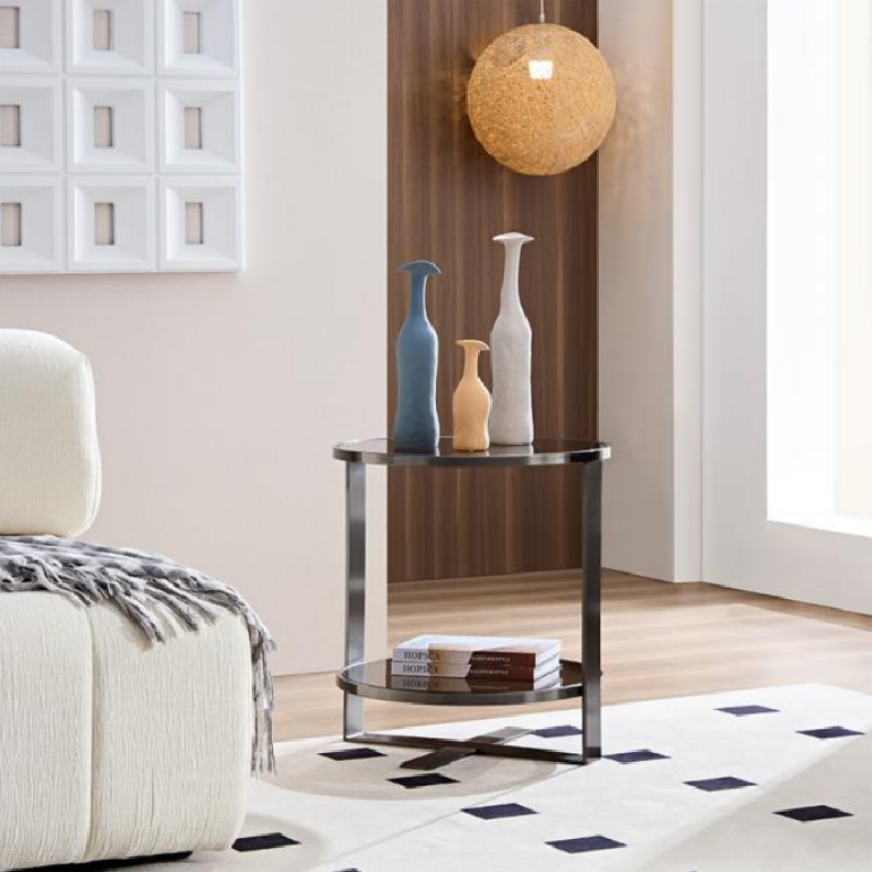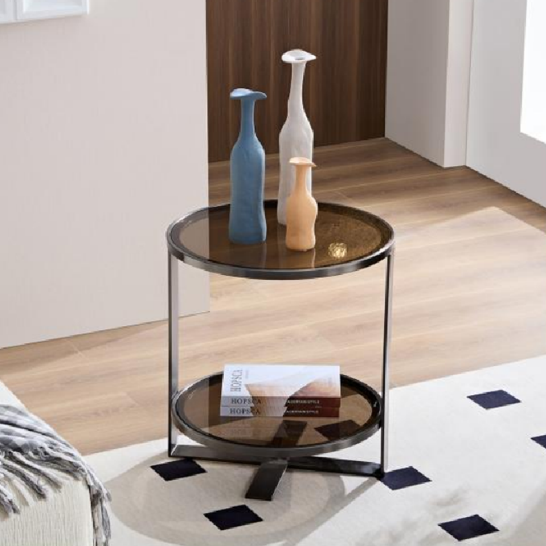 Round Glass Side Table CLEA – A sleek and minimalist coffee table with dual glass shelves and clean lines. A modern custom coffee table for sale, perfect for stylish yet functional interiors.