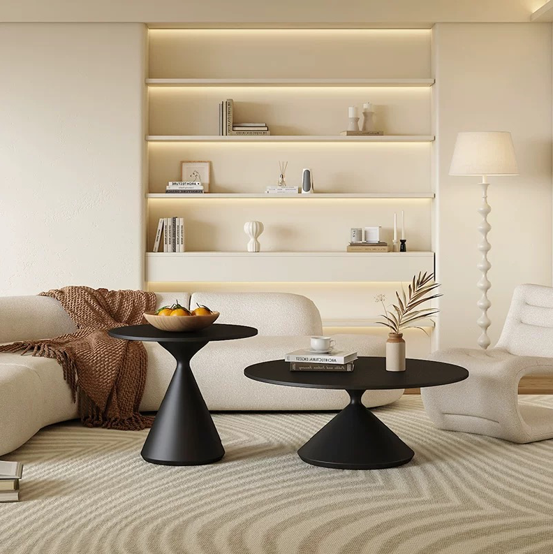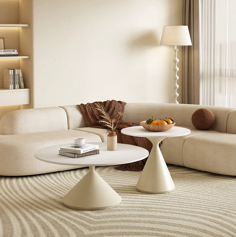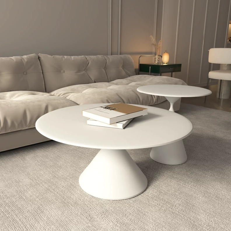 Sculpted Minimalist Coffee Table CREAD – A modern coffee table with a sleek cone base and clean round top. This custom coffee table blends line design elegance with functionality. Coffee table for sale now.