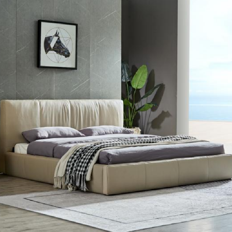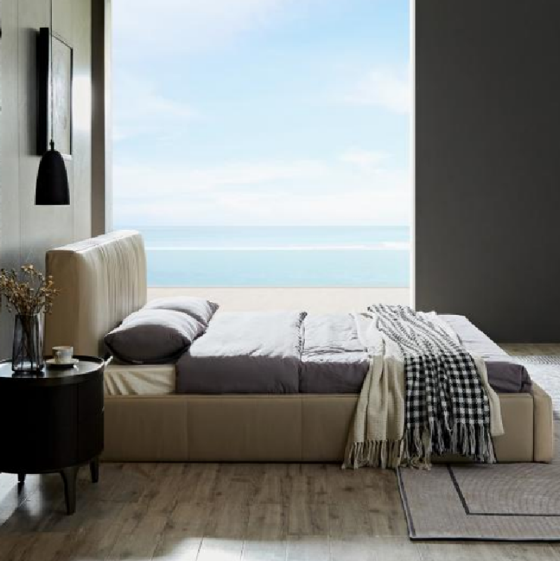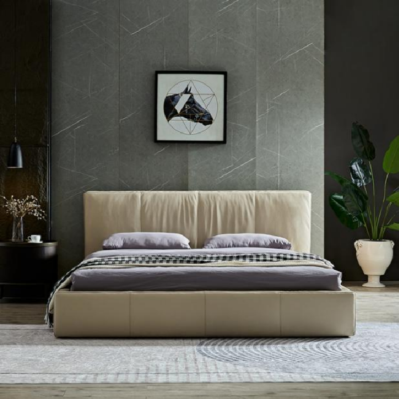 Textured Fabric Queen Bed DECKI – A modern double bed for sale with soft pleated bed design, offering the ability to customize bed size and style to match any room.