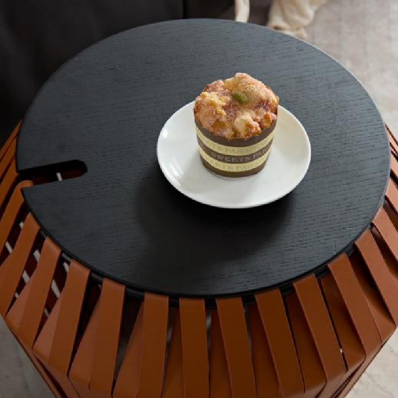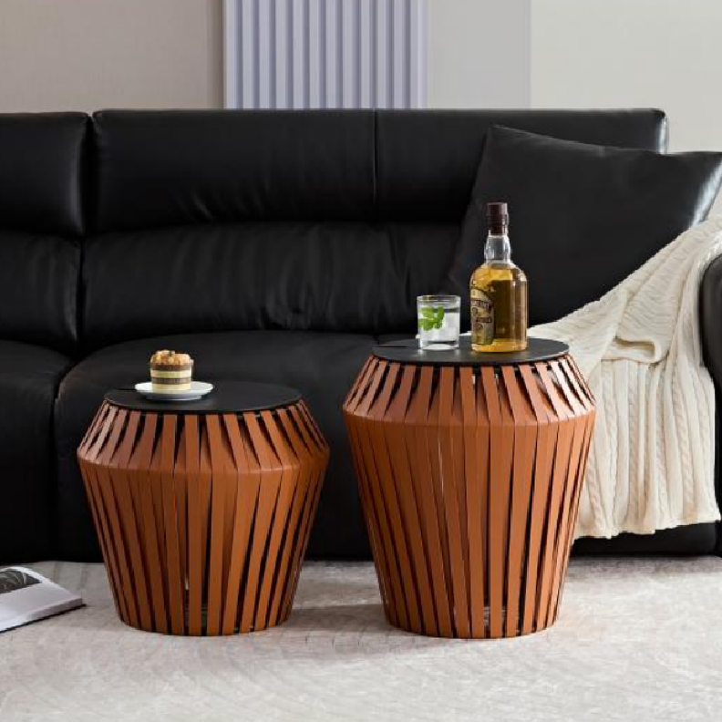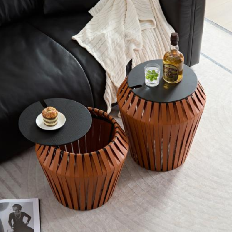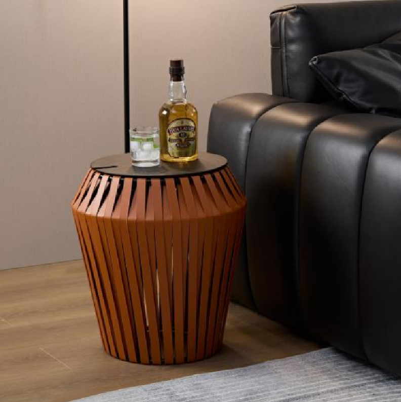 Slatted Wood Side Table ENID – A custom coffee table with sculptural lines and rich texture. This minimalist coffee table blends modern design and function—an eye-catching coffee table for sale now.