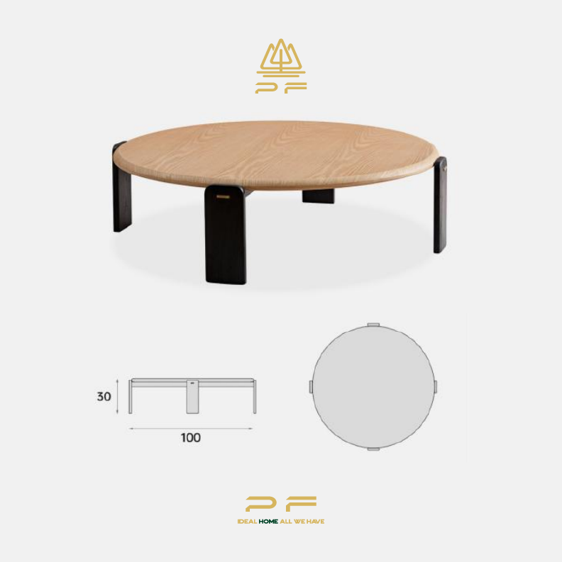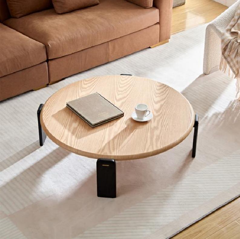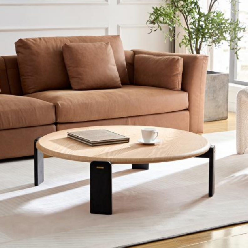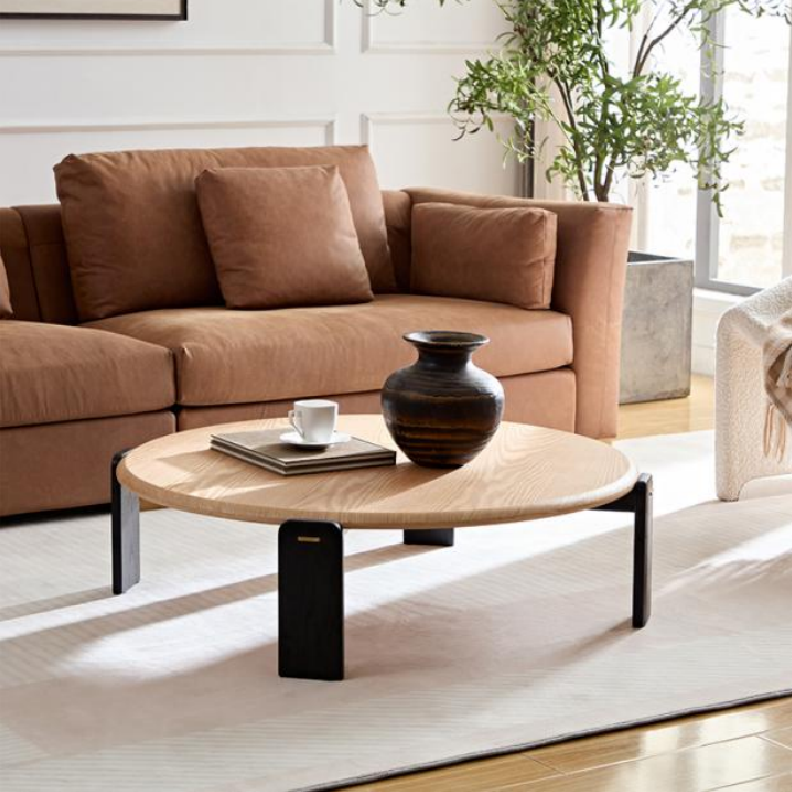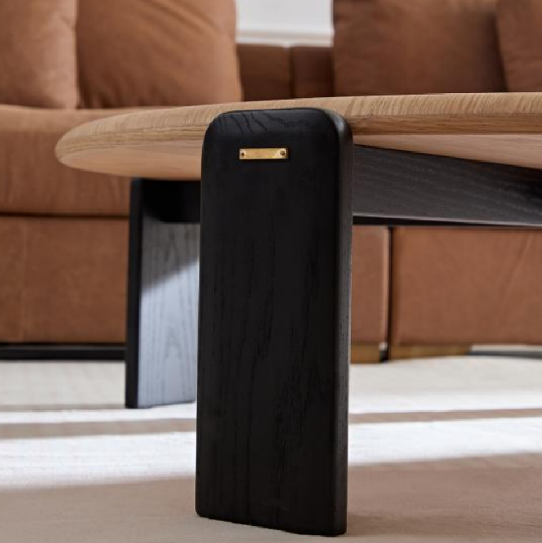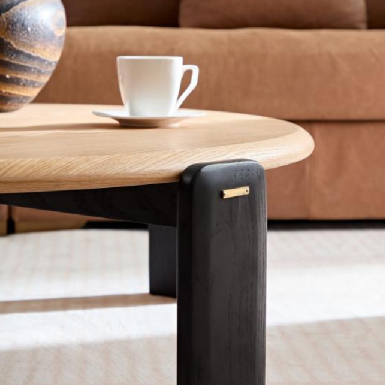 Round Modern Coffee Table HULL – This minimalist coffee table blends natural wood tones with striking black line design, making it a custom coffee table for sale and a best-selling favorite.