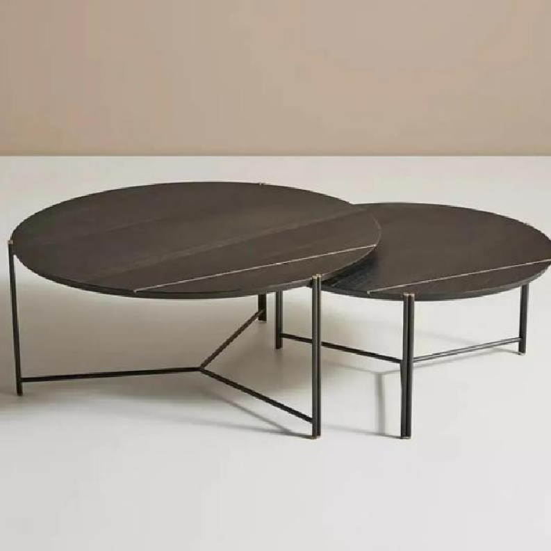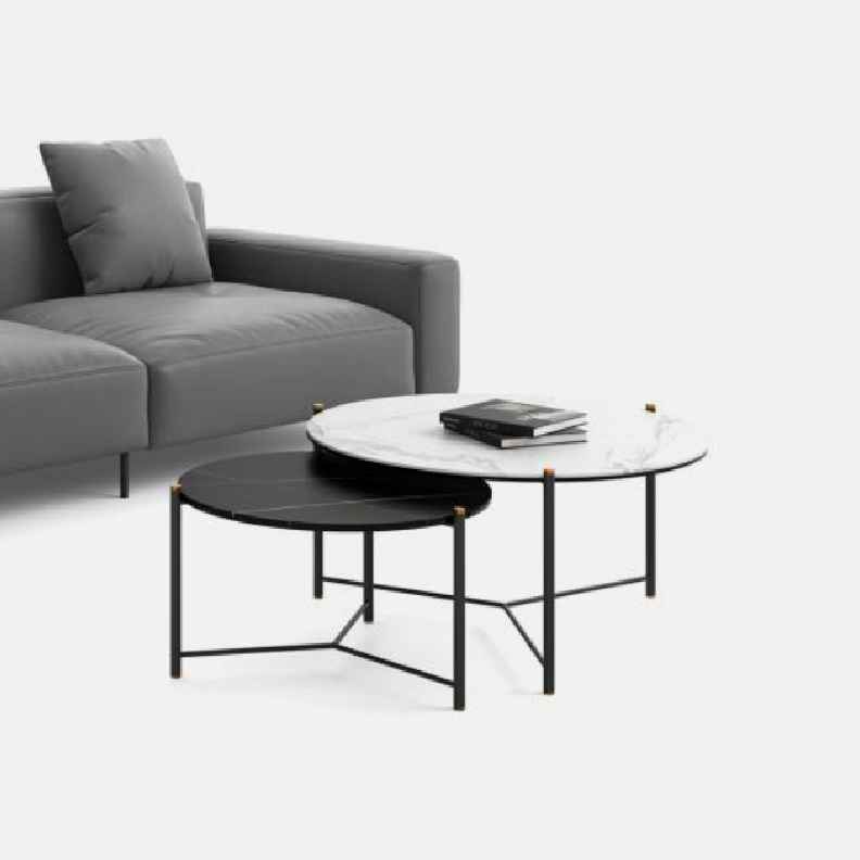 Black Round Minimalist Coffee Table Set LINK – A modern coffee table duo with sleek line design and metal framing, perfect for minimalist interiors. This custom coffee table is a best-selling coffee table for sale now.
