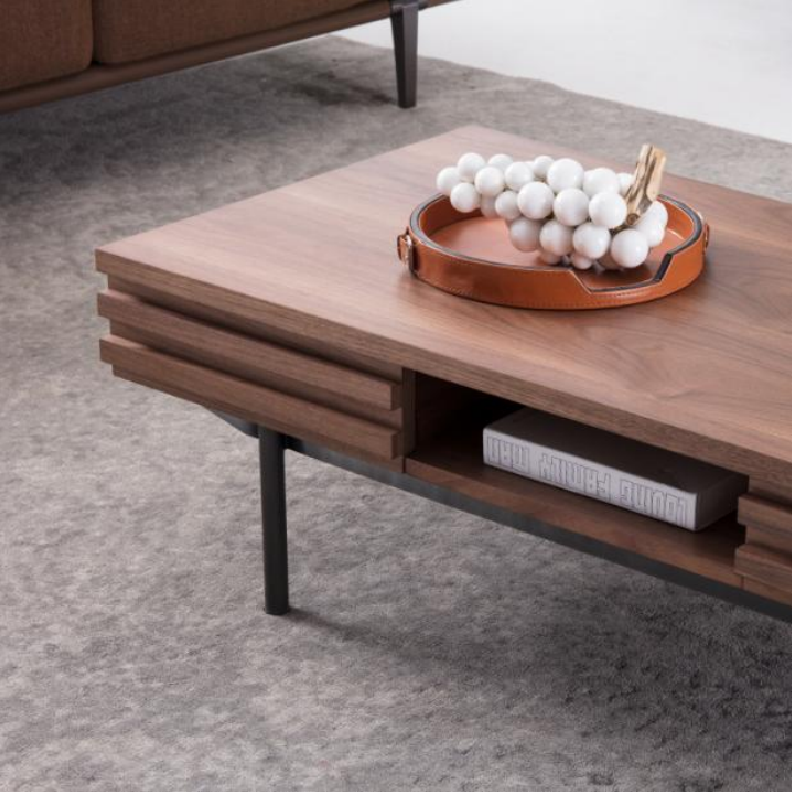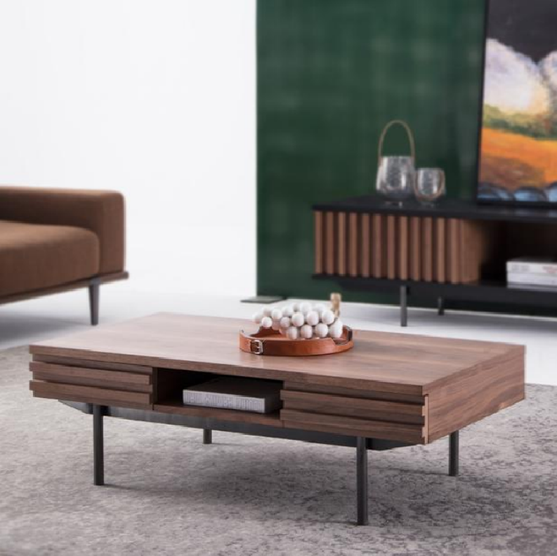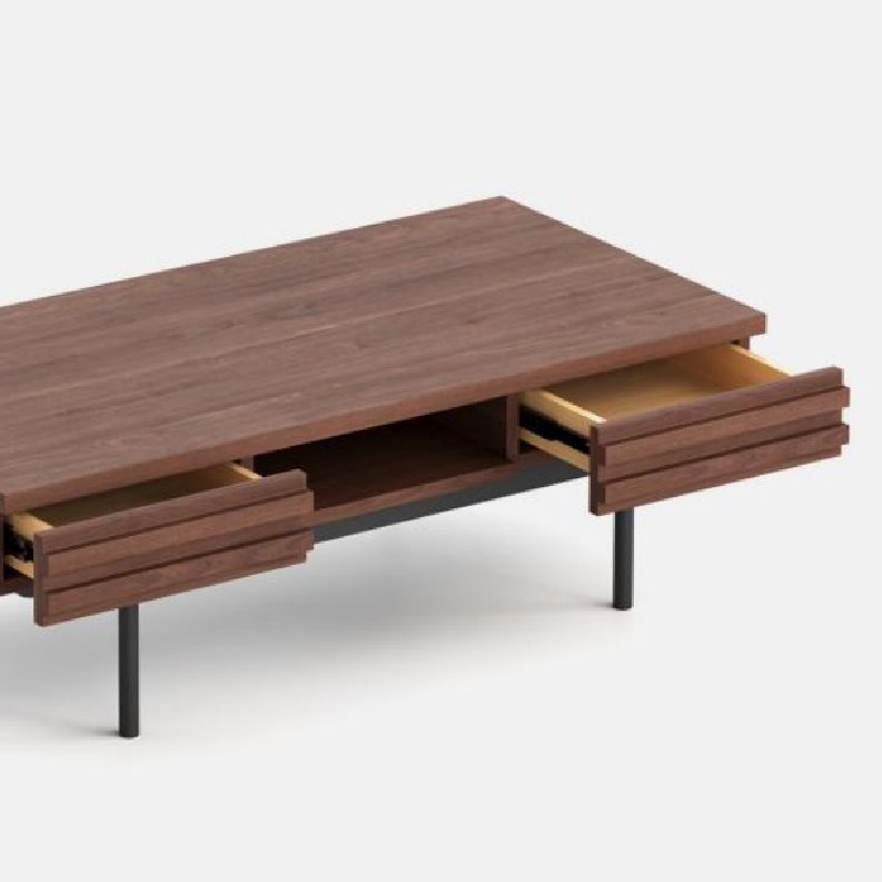 Modern Minimalist Coffee Table with Storage MUNRO – This best-selling coffee table for sale features clean lines, hidden storage, and a sleek silhouette, making it a perfect custom coffee table for any contemporary space.