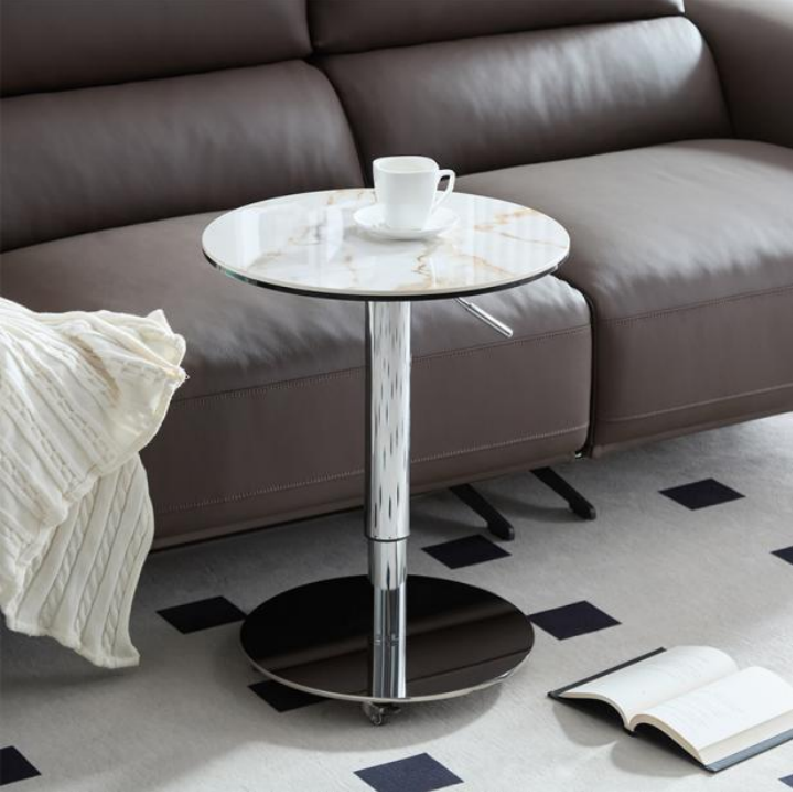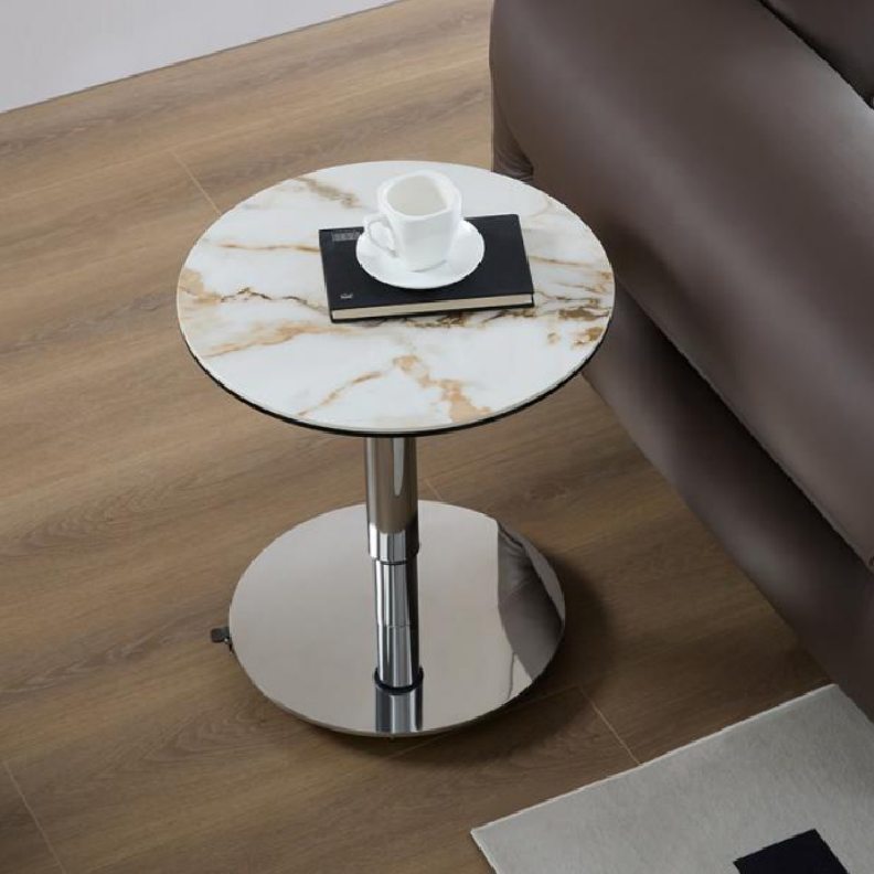 Marble Accent Coffee Table NEON – This minimalist coffee table features a sleek chrome base and marble top, blending modern style with function. A custom coffee table for sale that stands out effortlessly.
