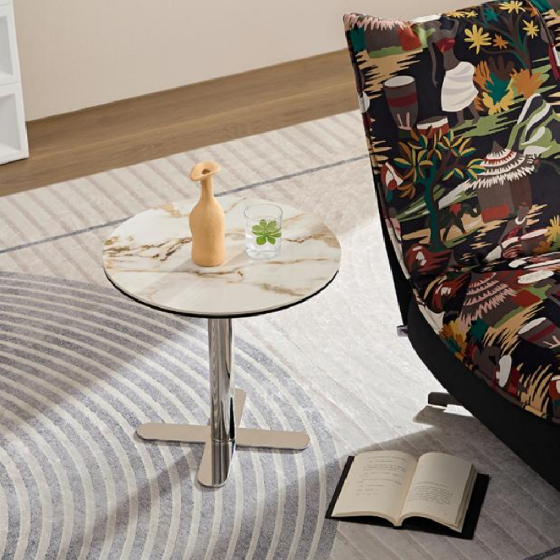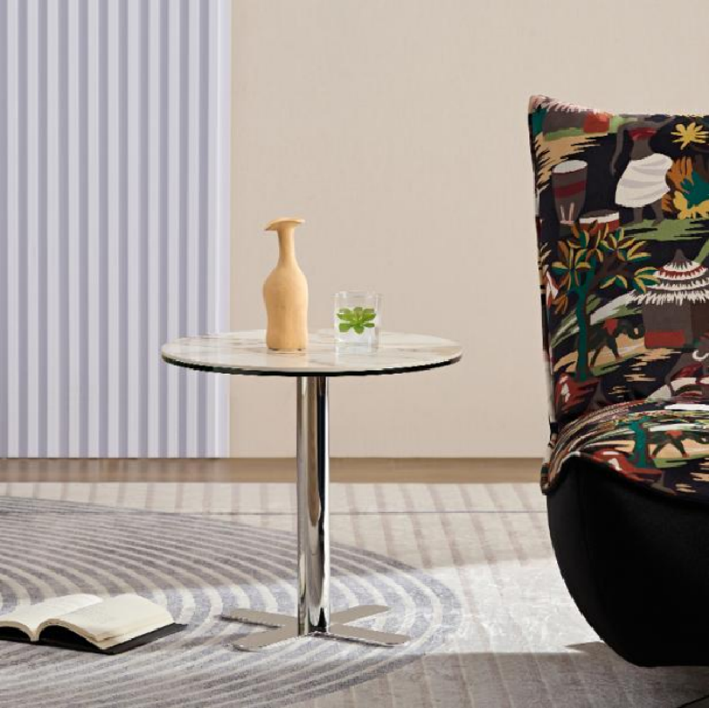 Chrome Base Minimalist Coffee Table ONNA – Sleek and compact, this modern coffee table pairs chrome detail with a clean round top. A best-selling coffee table for sale, perfect as a custom coffee table or accent piece.
