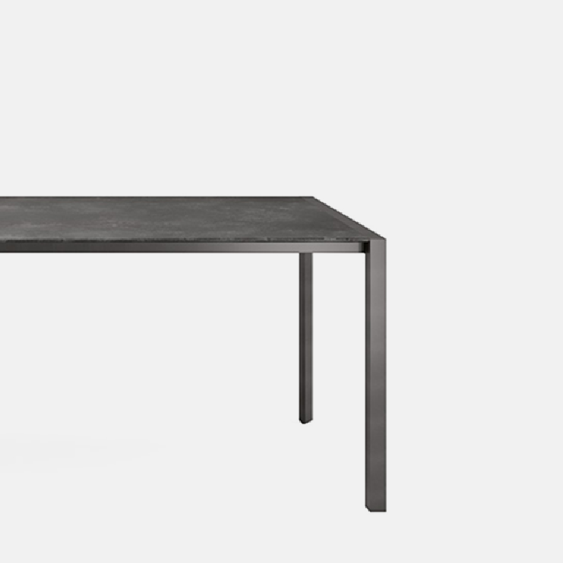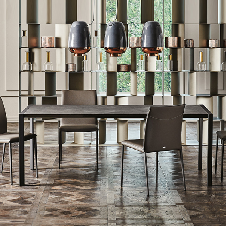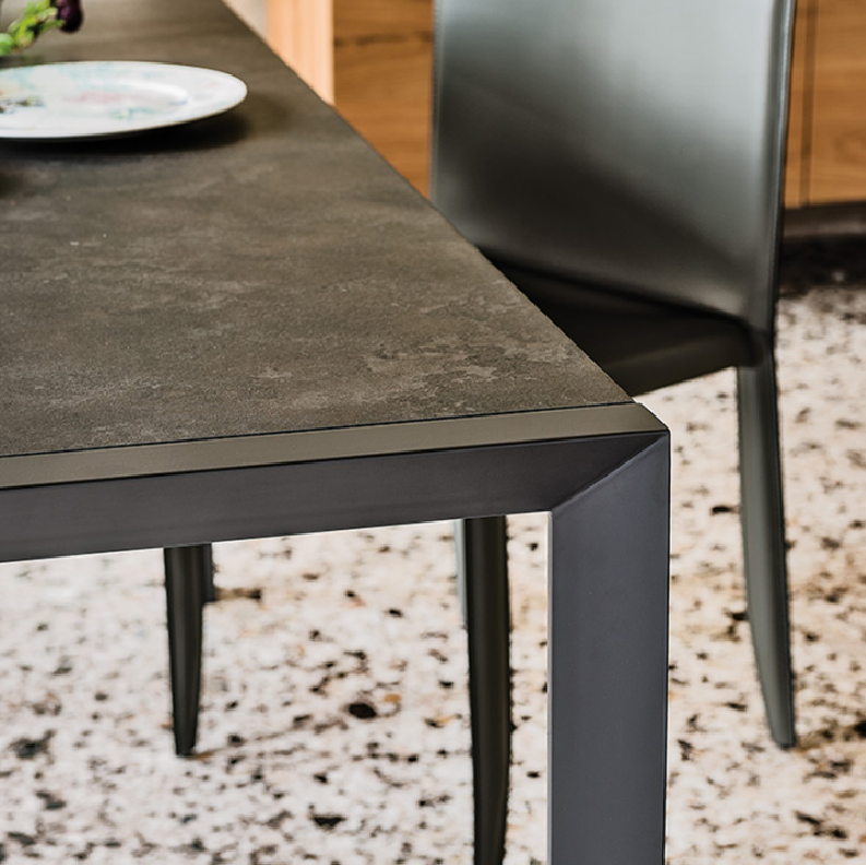 Industrial Chic Dining Table ORBIT – A sleek, durable dining table design with a matte black frame and stone-like surface, ideal for modern dining rooms or to buy dining table online. Discover this stylish dining table for sale today!