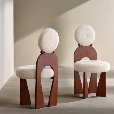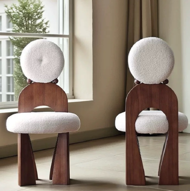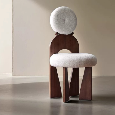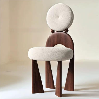 Uniquely designed chair takes inspiration from the silhouette of a girl wearing earrings—playful, charming, and full of character. It can be placed by a vanity, used as a dining chair, or enjoyed as a lounge seat, effortlessly creating a cozy corner at home. The generously curved backrest offers gentle support to the spine, relieving fatigue and accommodating relaxed postures. The seat is filled with high-density foam, delivering superior comfort and ensuring that legs rest naturally without pressure. Its circular base structure evenly distributes weight, providing strong stability and reducing the risk of tipping. All prices include shipping. Bigger discounts for larger purchases. Direct sales from the manufacturer, with customization options available. Compatible with any other products.