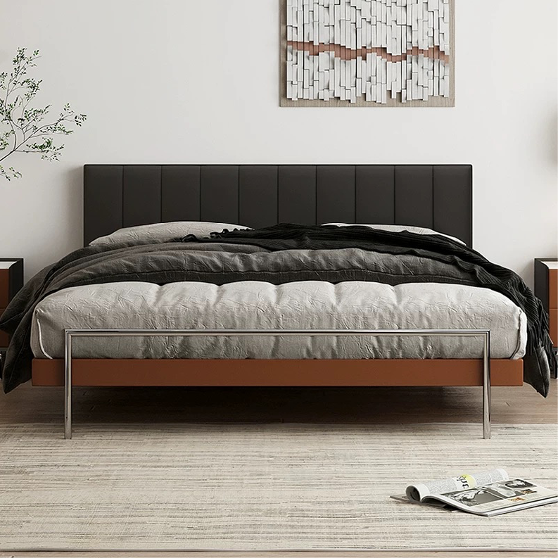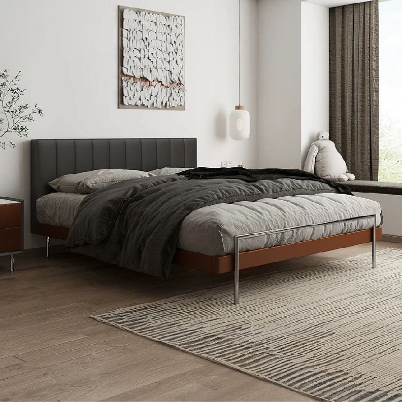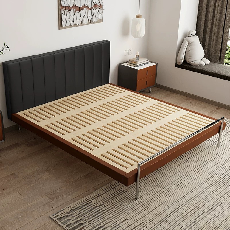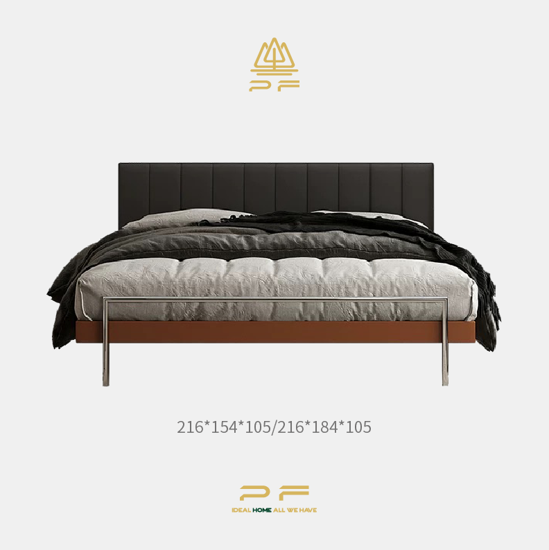 Modern Metal Frame Queen Bed YEOOL – A minimalist double bed for sale with sleek vertical-panel bed design, ideal to customize bed style in any contemporary space.